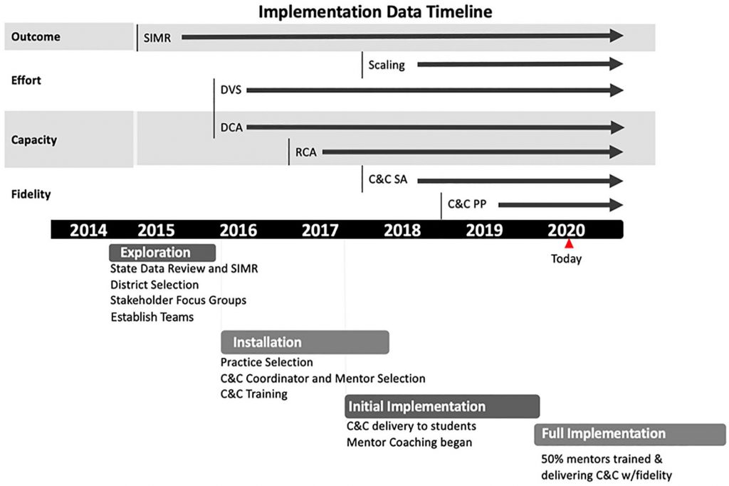 - The first step in the work begins with superintendent and district leaders engaging in data analysis as part of the exploration phase, using the Implementation Science Framework. The data findings drive the decision-making process, allowing districts and schools to pinpoint and prioritize their focus based on their own identified needs.